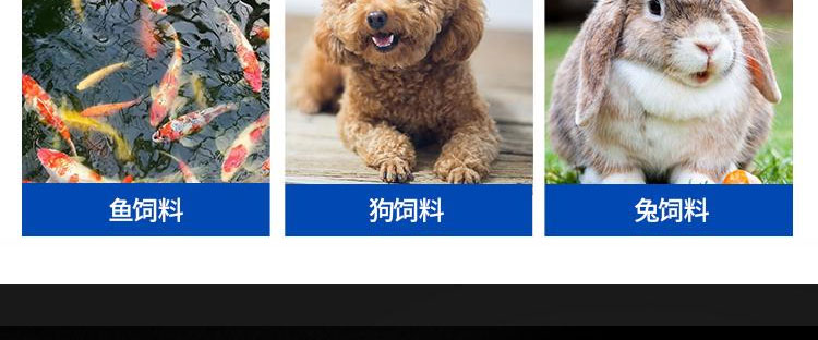 3、顆粒成分(fèn)均勻,形狀整齊(qí),顆粒粗細的孔徑可分為:Φ2、Φ2.5、Φ3、Φ3.5、Φ4、Φ5、Φ6、Φ7、Φ8等。用戶(hù)訂貨時,可根據養殖動物不同生長時期需要選擇。